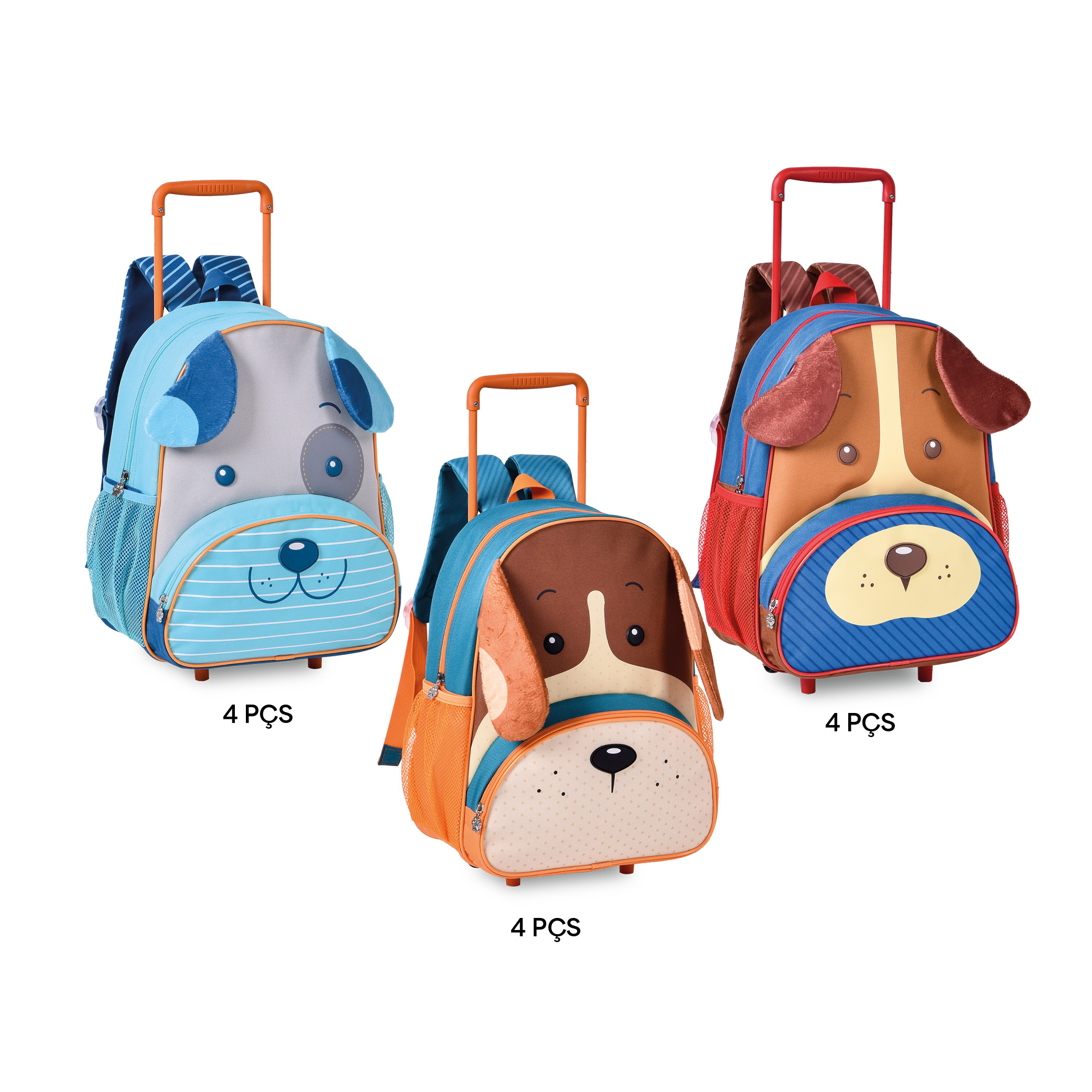 Confeccionadas em poliéster com frente em silk e detalhes de pelúcia.