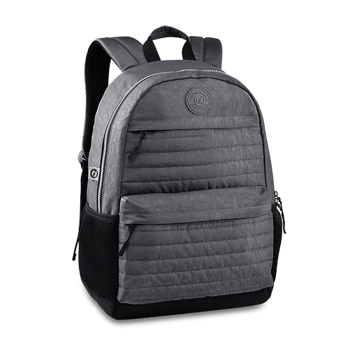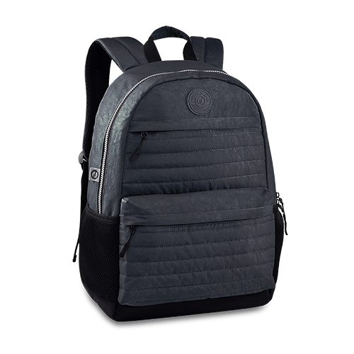 Confeccionado em crinkle. Possui compartimento para laptop e bolso antifurto.