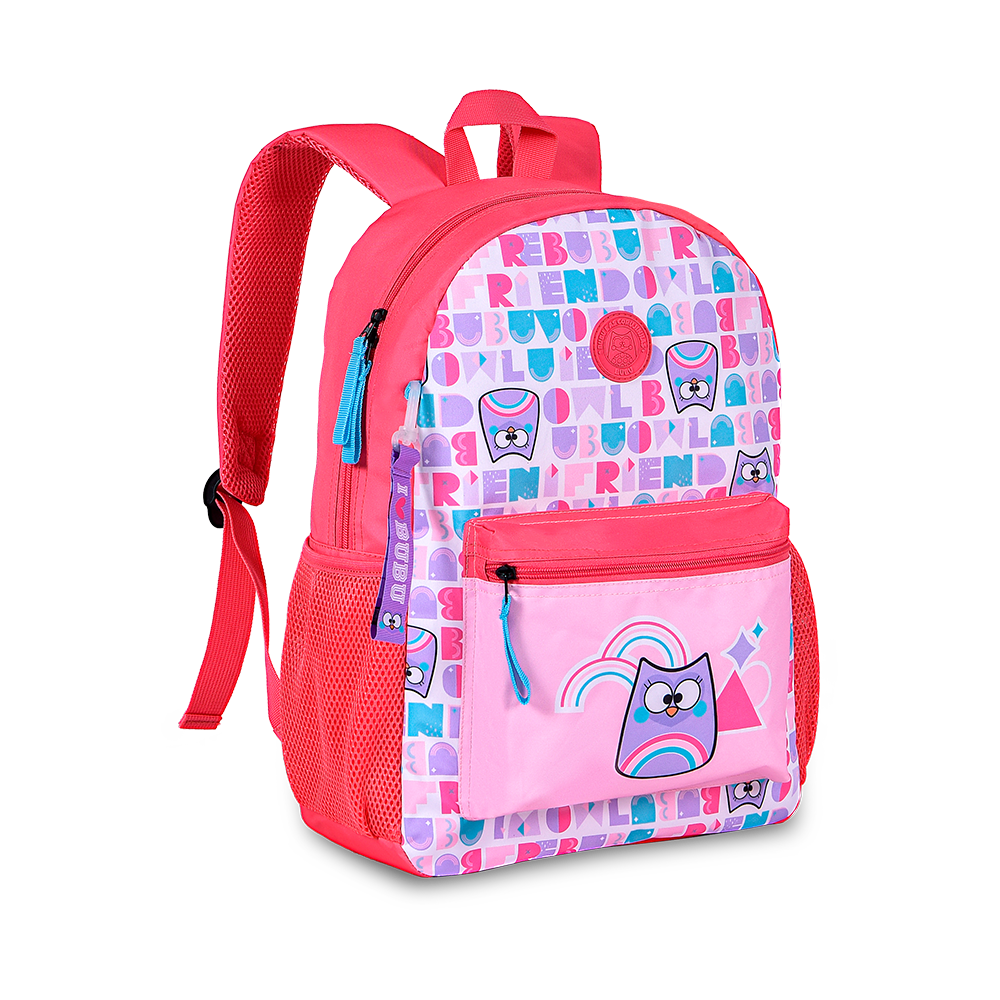Confeccionada em poliéster com estampa corrida e tag de borracha. Mochilas acompanham chaveiro de tecido. Com tag de borracha e chaveiro personalizados.