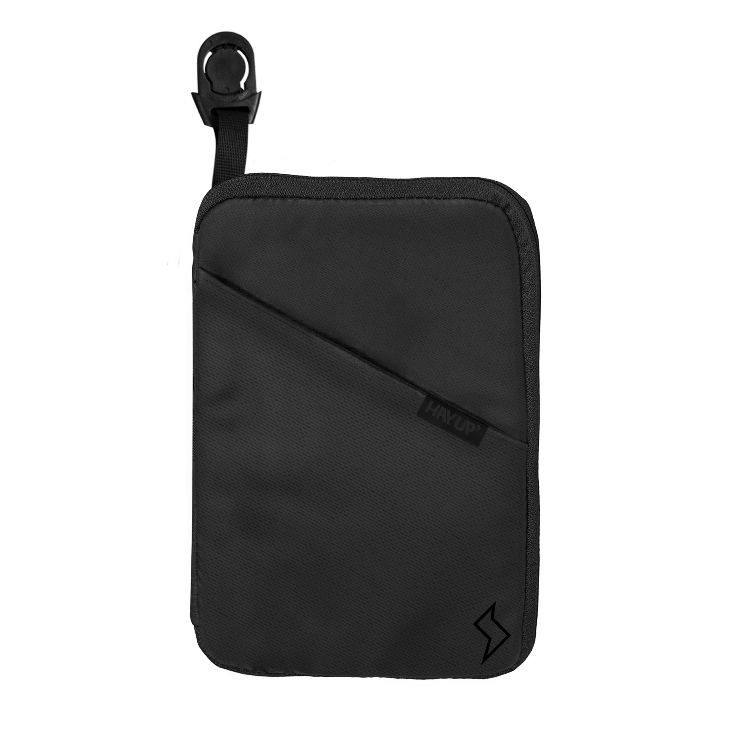 Porta documentos confeccionado em poliéster com fechamento em zíper. Todos os produtos possuem o engate para serem acoplados no cinto.